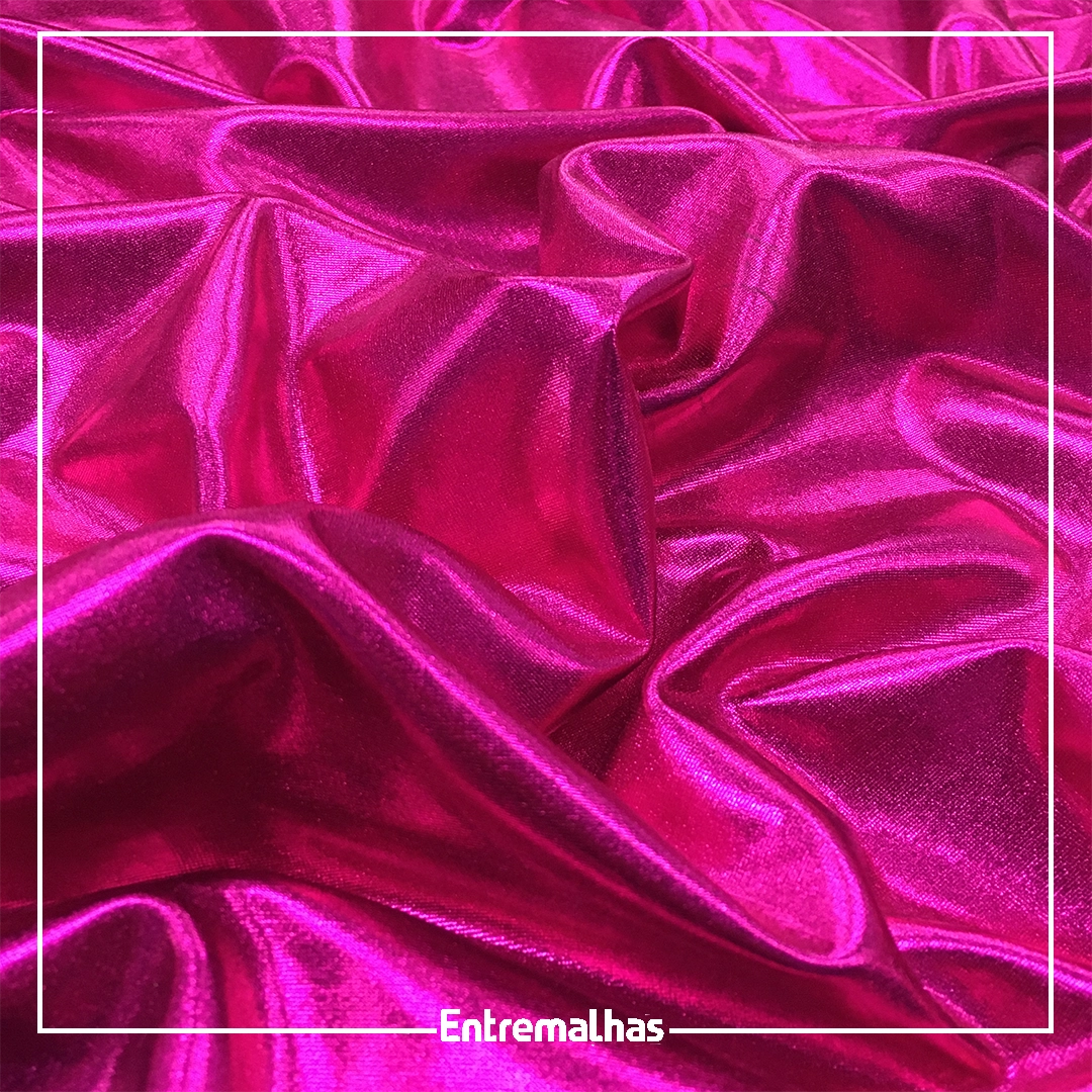 Tecido com acabamento brilhoso de efeito laminado, superfície lisa e toque macio, Tem boa elasticidade, caimento fluido e maleabilidade, facilitando a modelagem de peças ajustadas ou com movimento.