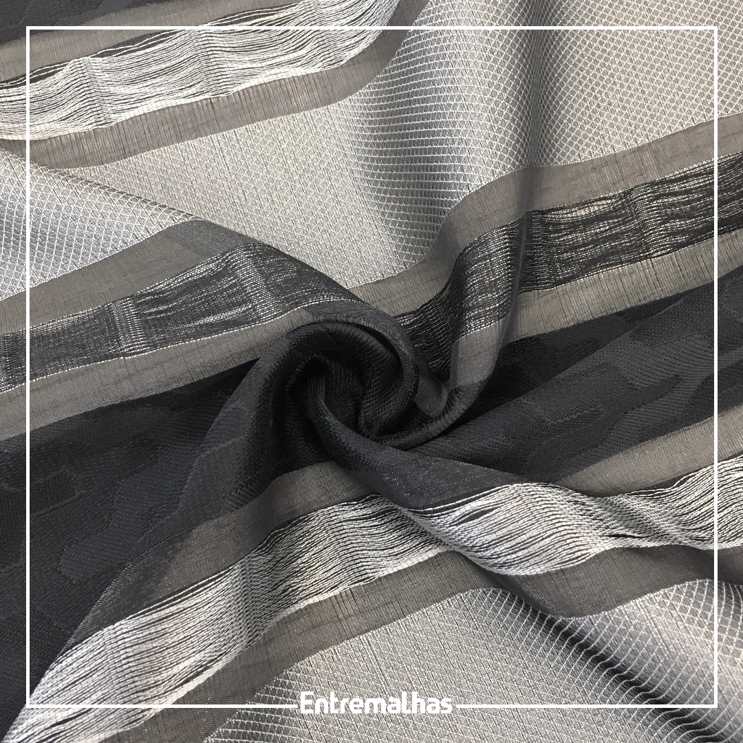 O tecido Voal Listrado é leve e translúcido, com listras que conferem sofisticação e charme. Sua mistura de fibras garante um caimento delicado, ideal para valorizar ambientes com leveza.